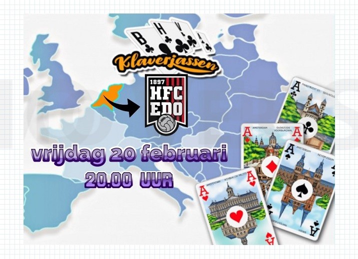 Op vrijdagavond 20 februari zal in de HFC EDO kantine weer een klaverjasavond worden gehouden.