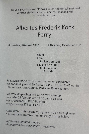 In Memoriam: Ferry Kock 20 maart 1940 - 15 februari 2026