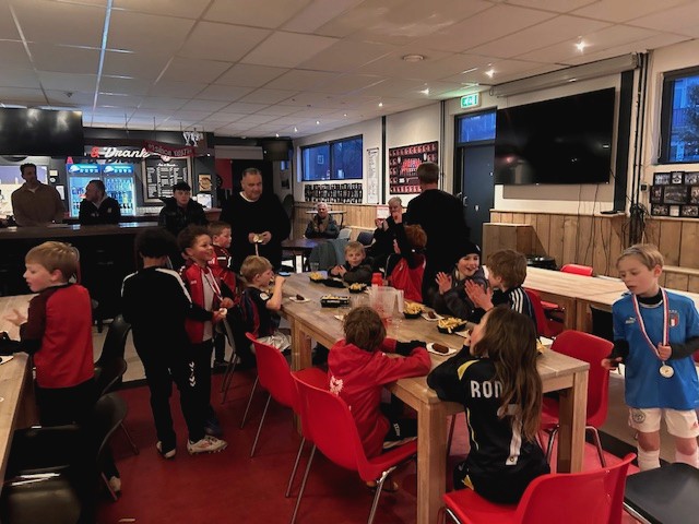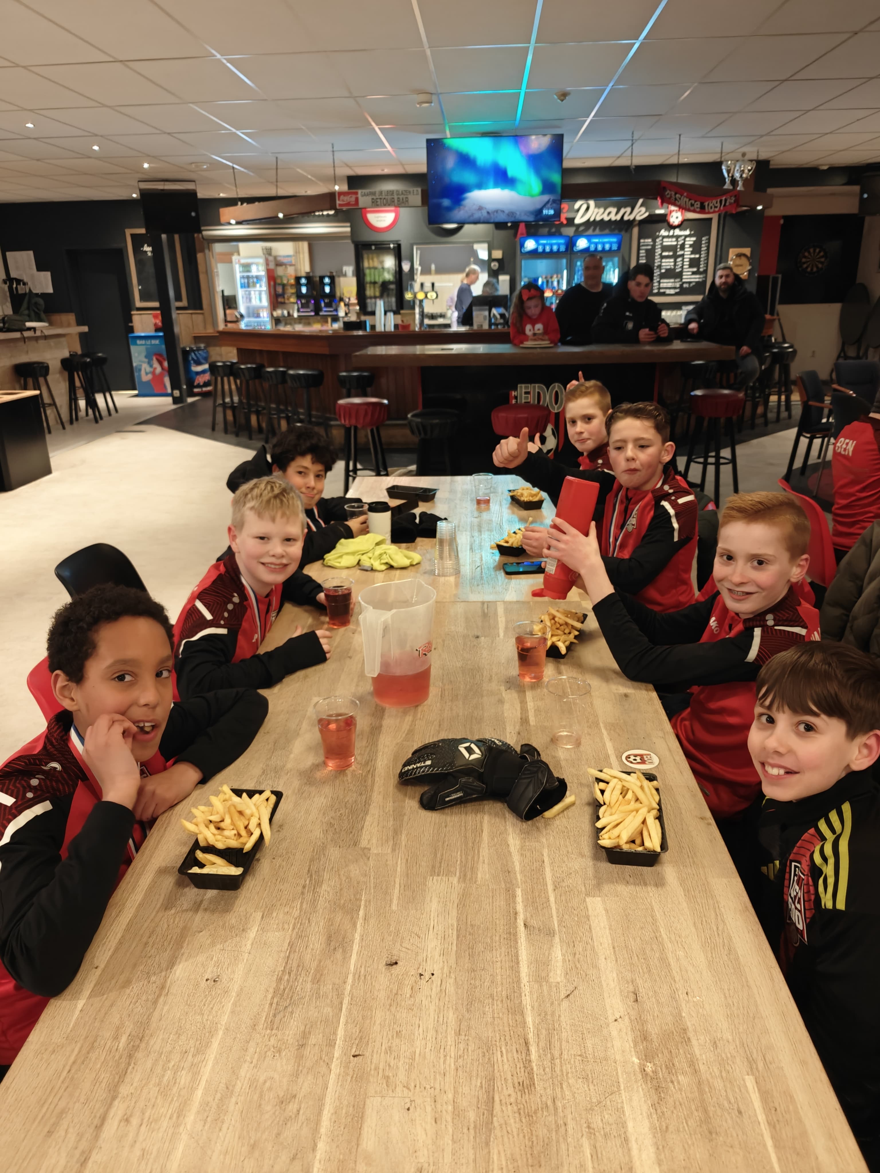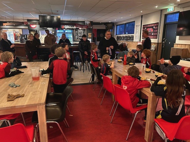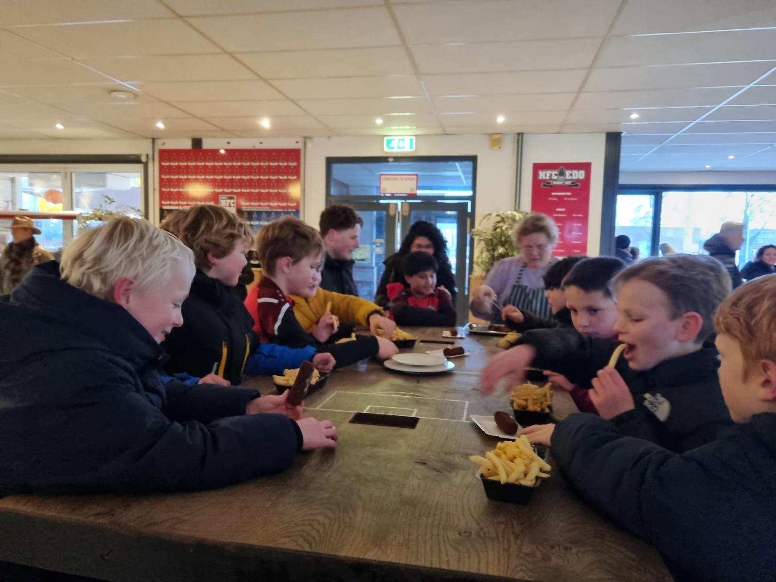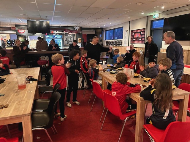 Op woensdag 18 februari werd er na de trainingen, in verschillende shifts, volop genoten van patat, limonade en kroketten.