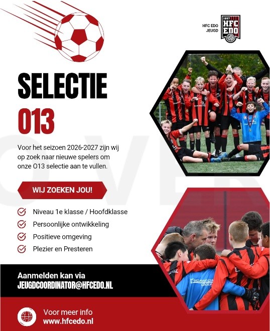 Aanmelden kan via: jeugdcoördinator@hfcedo.nl
