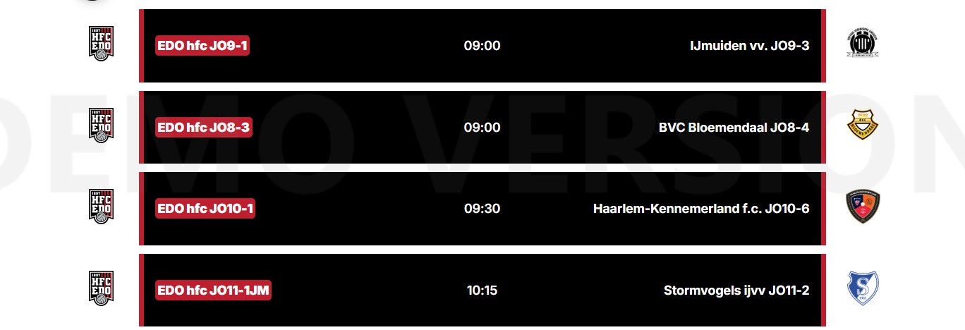 'S ochtends om 09.00 uur zijn de eerste twee wedstrijden al, gevolgd door de training voor onze allerjongste spelertjes. Hierna zijn er op deze ochtend nog drie wedstrijden voor onze jeugdspelers ingepland.