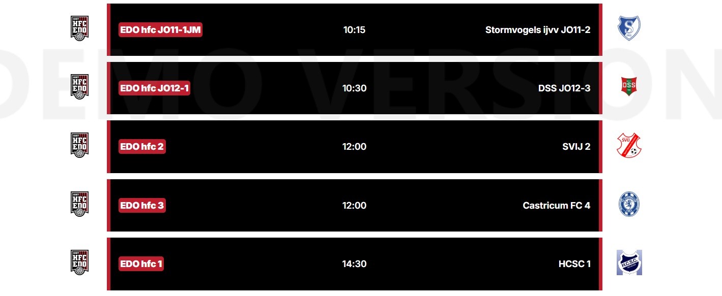 Aankomende zaterdag 18 april worden er op het terrein van onze verenging acht thuiswedstrijden gespeeld die keurig over de dag zijn verdeeld.