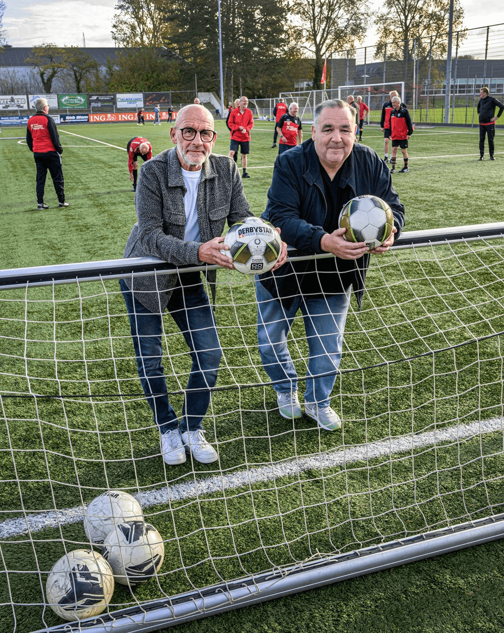 Duncan di Cicco en Marco Dorgelo bij EDO met op de achtergrond het Walking Football