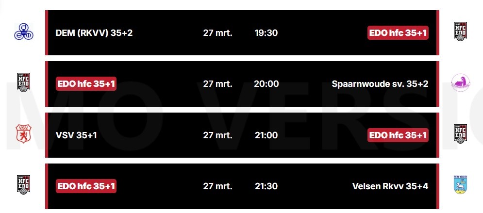 Bijna elke week spelen onze 35+ voetballers op vrijdagavond een minitoernooi bij een club uit onze regio. Op vrijdag 27 maart is het HFC EDO terrein de plek waar de sterren van weleer hun wedstrijden gaan spelen in deze minitoernooi vorm.